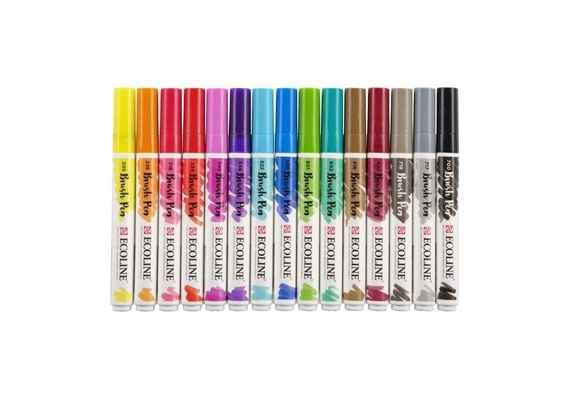 Σετ από 15 brush μαρκαδόρους , της πολύ αγαπημένης σειράς Ecoline Της Royal Talens. Λόγω της μοναδικής τους φόρμουλας με υψηλής ποιότητας χρωστικές αναμειγμένες με αραβική κόμη, οι μαρκαδόροι της σειράς δίνουν το ίδιο δυνατά και όμορφα χρώματα με τις liquid ecolines.
