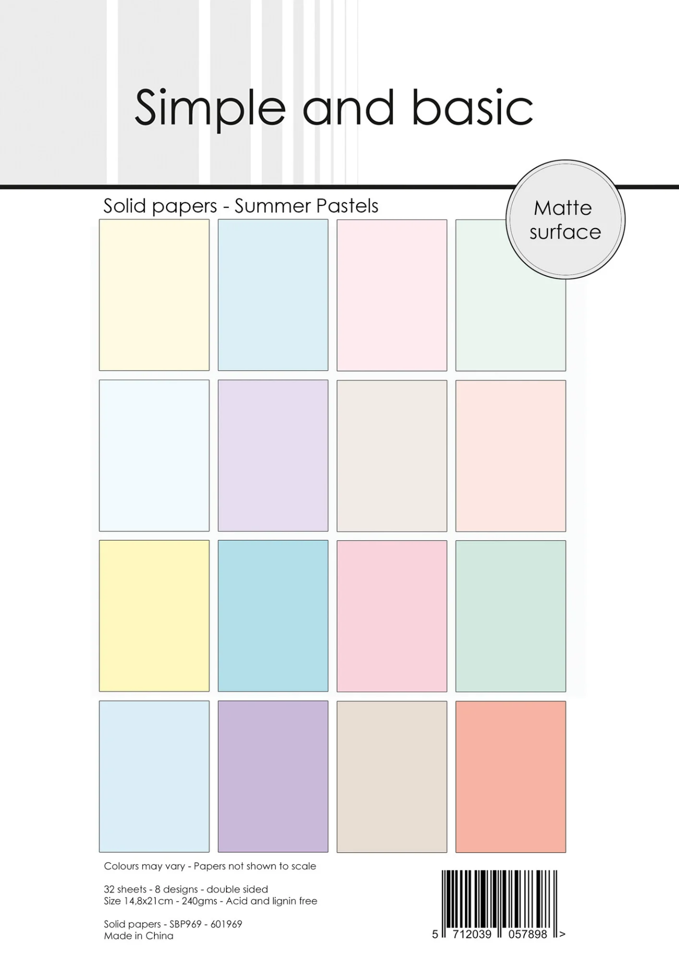Simple and Basic Μονόχρωμα Cardstock 240gsm Διπλής Όψης A5 - Summer Pastels, 32 τεμ.