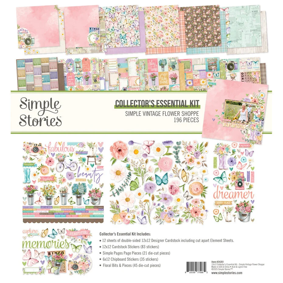 Simple Stories Vintage Flower Shoppe collectors essentials kit paper pad 12x12 scrapbooking patterned designer cardstock flowers tags stickers cards chipboard die cuts diecuts die-cuts decorative spring easter butterflies bicycles cameras μπλοκ χαρτια διπλης οψης ανοιξη πασχα λουλουδια ποδηλατα πεταλουδες φωτογραφικη μηχανη συλλογή εφημερα εφεμερα διακοσμητικα αυτοκολλητα κιτ
