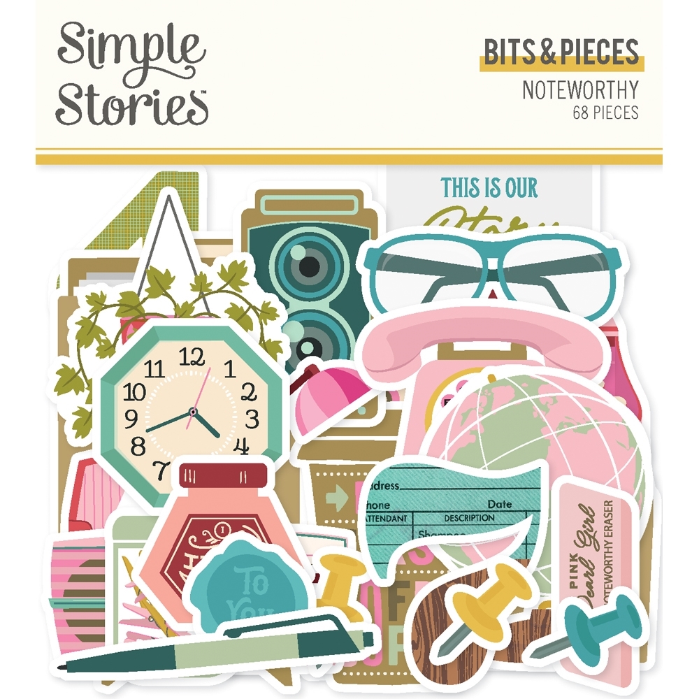👉 Στη συσκευασία θα βρείτε 68 διακοσμητικά εφήμερα Bits & Pieces με θέμα το memory keeping. Εικόνες με ρολόγια, αριθμούς, στυλό, συρραπτικά, φακέλους, φωτογραφικές μηχανές, γραφομηχανές και όμορφα, αισιόδοξα sentiments.