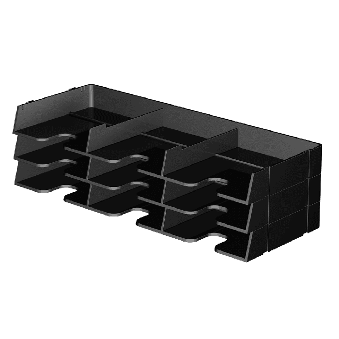 Αυτή η θήκη, είναι διαφορετική από τις υπόλοιπες της σειράς, γιατί είναι σχεδιασμένη να προσαρμόζεται στις δικές σας ανάγκες αποθήκευσης. Διαθέτει δύο πλαστικές βάσεις στήριξης διαφορετικής διαμέτρου, κατάλληλες για μπουκαλάκια 0.5 & 1oz, και το κατάλληλο ύψος για να χωράει από distress reinkers, μέχρι stickles, mists και ακρυλικό χρώμα!