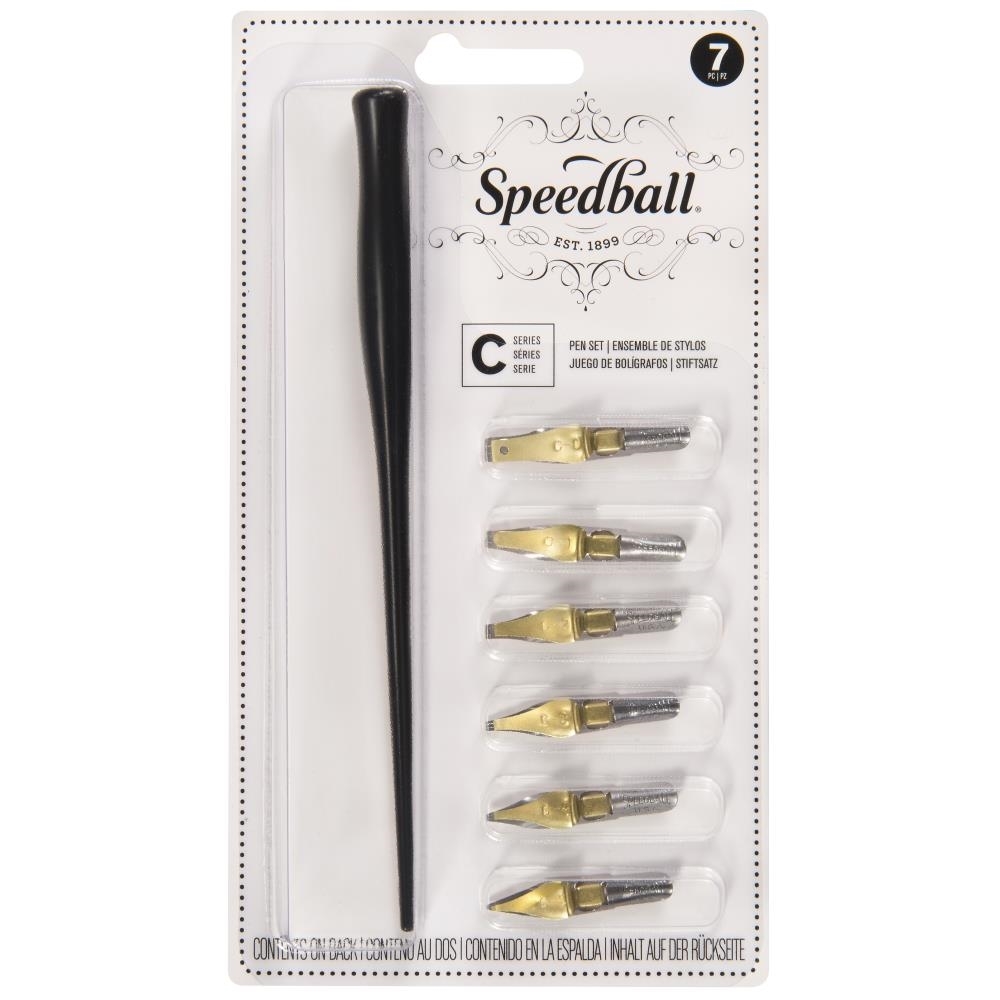 Το Speedball Lettering Set – Series C SB2957 είναι από εκείνα τα εργαλεία που σε βάζουν κατευθείαν στο ύφος της παραδοσιακής καλλιγραφίας. Αν σου αρέσει η γραφή με χαρακτήρα, οι καθαρές φόρμες των γραμμάτων και η αίσθηση του μελανιού πάνω στο χαρτί, αυτό το σετ σου δίνει μια πολύ σωστή βάση για να ξεκινήσεις ή να εξασκηθείς πιο ουσιαστικά. Οι πένες της σειράς C είναι broad-edge και δουλεύουν σε σταθερή γωνία, ώστε να δημιουργούν τις χαρακτηριστικές εναλλαγές ανάμεσα σε λεπτές και φαρδιές γραμμές που συνδέονται με την κλασική καλλιγραφία. Η ίδια η σειρά C προτείνεται για γραφές όπως Roman, Carolingian, Italic, Blackletter, Uncial και Foundational, ενώ το σετ περιγράφεται από καταχωρίσεις του προϊόντος ως κατάλληλο για Roman, Italic, line accents, scrolls και scripts.