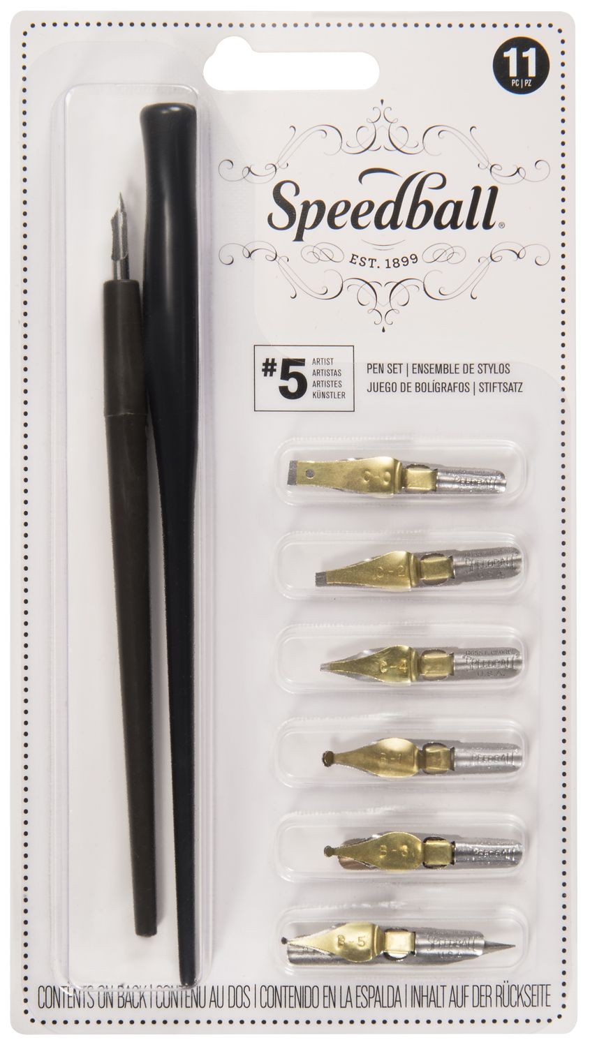 Το No. 5 Artist Pen Set – 2962 της Speedball είναι από εκείνα τα σετ που σε βγάζουν από τη λογική του «ένα εργαλείο για μία χρήση». Εδώ έχεις στη διάθεσή σου διαφορετικές πένες και δύο διαφορετικούς κονδυλοφόρους, ώστε να μπορείς να περάσεις από καλλιγραφία και lettering σε σχέδιο, σκίτσο, χαρτογραφικό σχέδιο ή πιο εικονογραφική δουλειά με την ίδια άνεση. Είναι ένα σετ φτιαγμένο για δημιουργούς που θέλουν να δοκιμάζουν, να αλλάζουν ύφος και να έχουν επιλογές πάνω στο χαρτί.