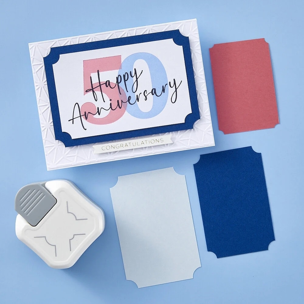 Γωνιακός κόπτης 2 σε 1 από την Spellbinders. Ηο Punch σας βοηθάει να δημιουργήσετε εγκοπές σε 3 διαφορετικά μεγέθη (6,35 mm, 12,7 mm, 19 mm). Με οδηγούς για ακριβή τοποθέτηση χαρτιού. Ιδανικό για κλεισίματα σε φακέλους, δώρα, tabs, mini file folders, κ.λπ.