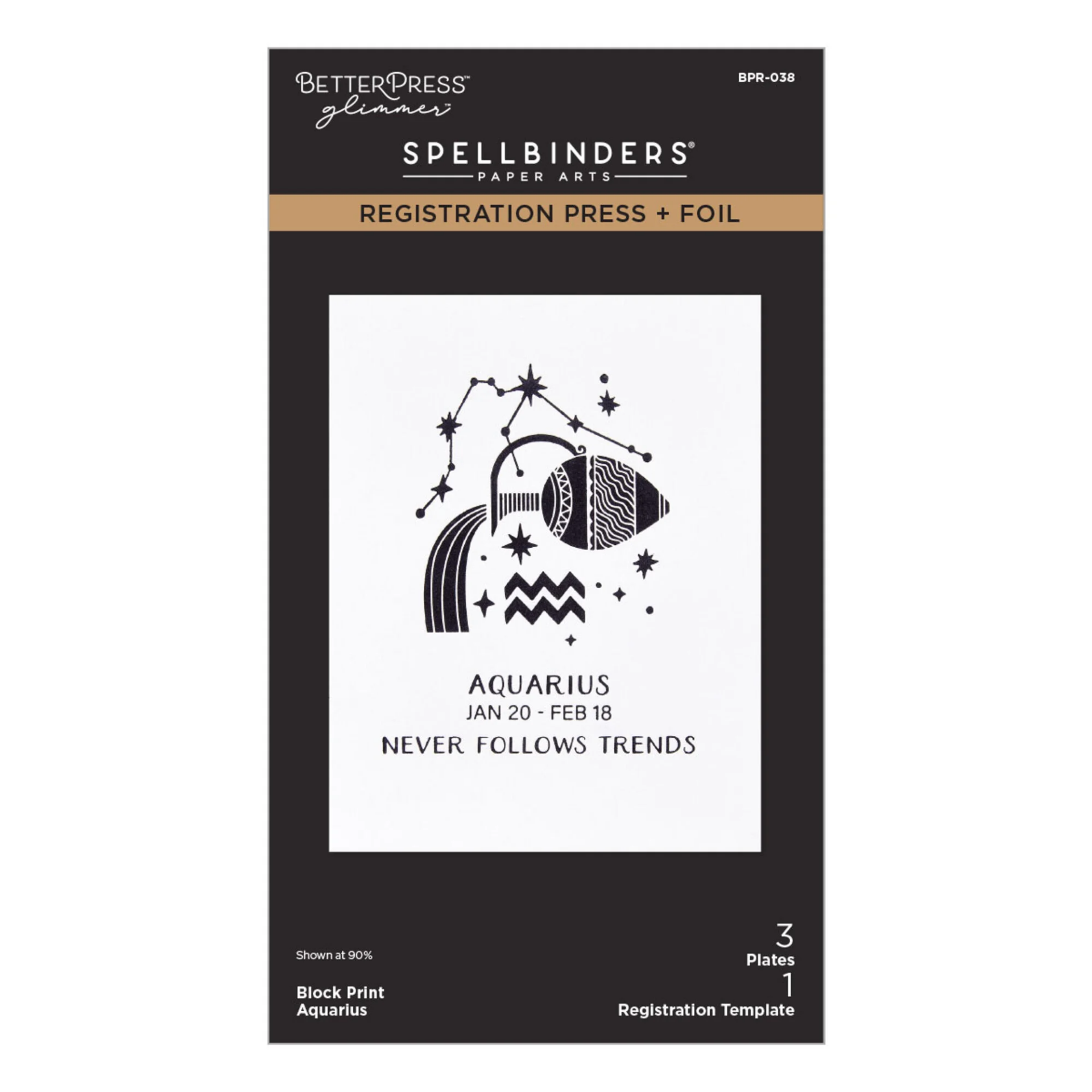 Το Block Print Aquarius Registration Press + Foil Plate είναι ένα σετ σχεδιασμένο για να αποδίδει το ζώδιο του Υδροχόου με καθαρές γραμμές και έντονη, γραφιστική αισθητική τύπου block print.