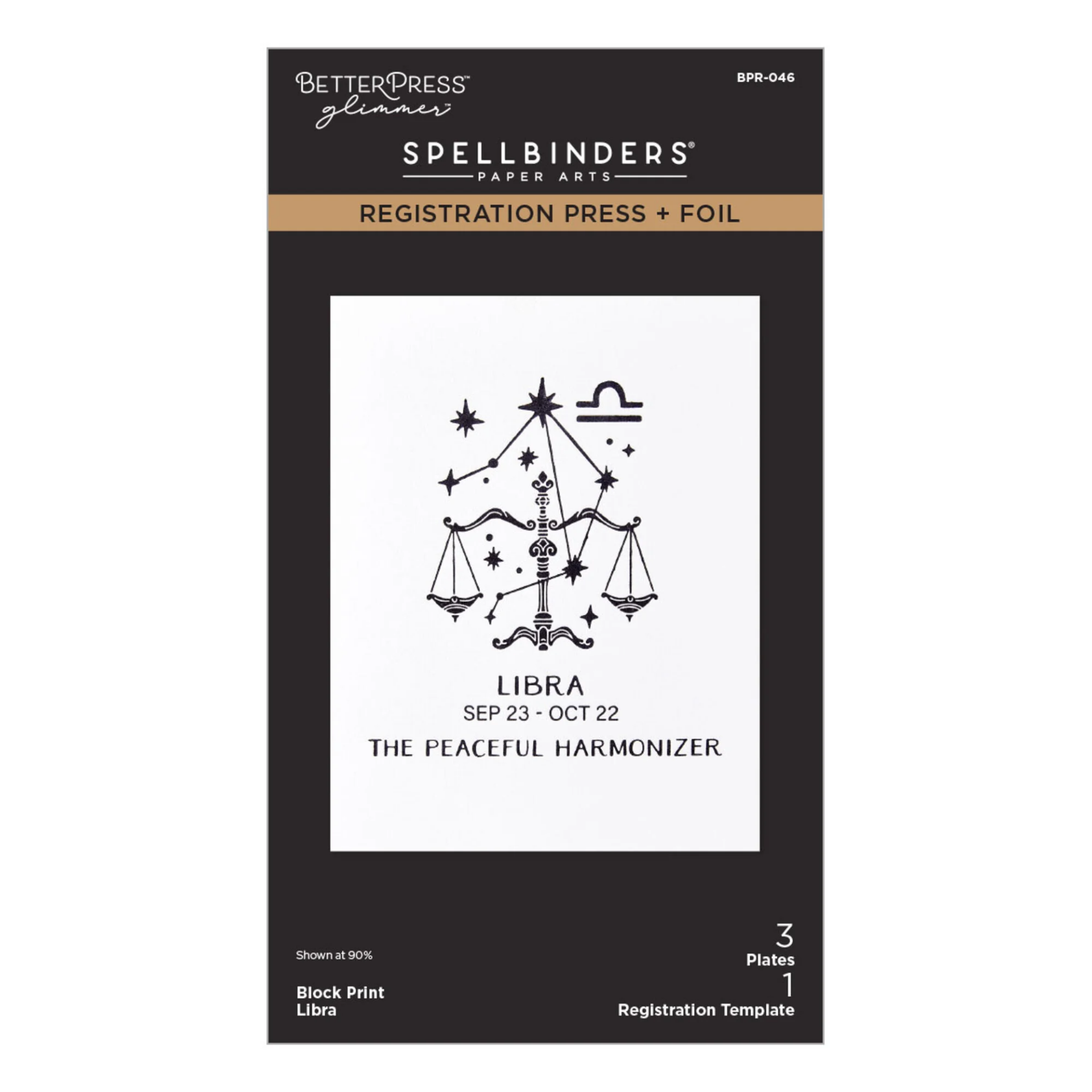 Το Block Print Libra Registration Press + Foil Plate είναι σχεδιασμένο για να αποδίδει το ζώδιο του Ζυγού με καθαρές γραμμές και δυνατή, γραφιστική αισθητική τύπου block print.