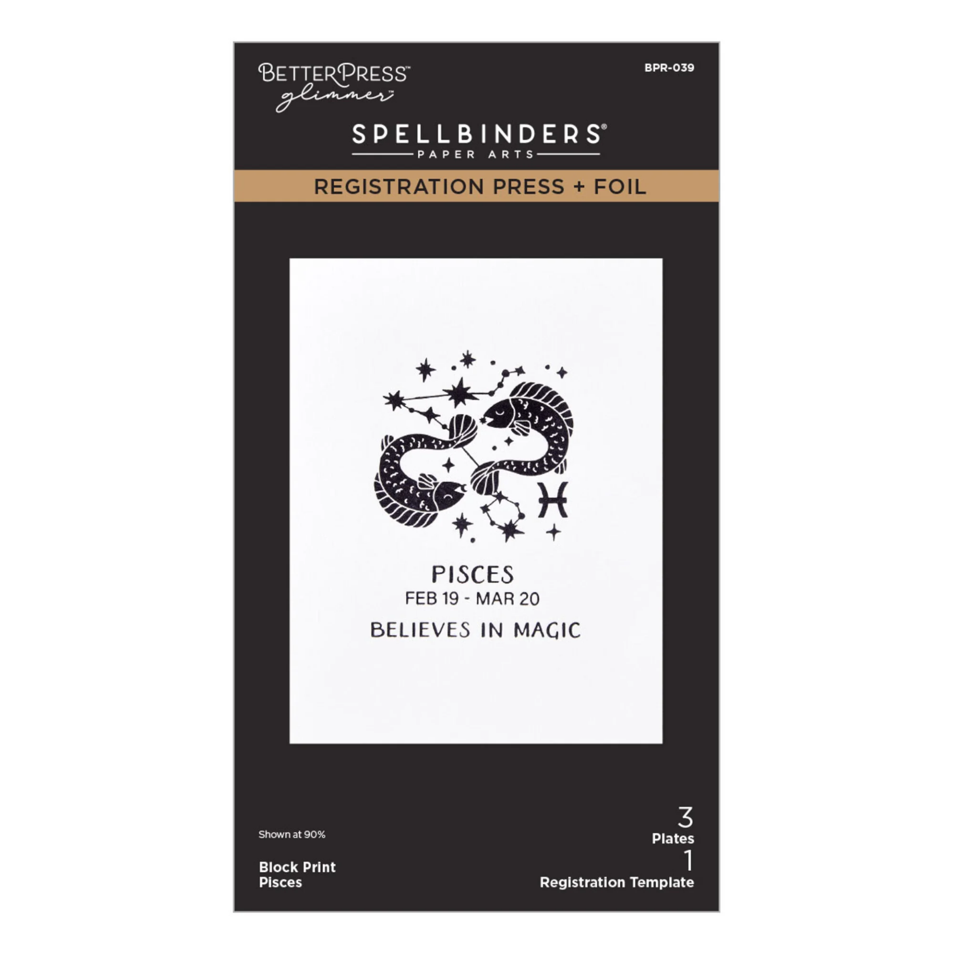 Το Block Print Pisces Registration Press + Foil Plate είναι σχεδιασμένο για να αποδίδει το ζώδιο των Ιχθύων με καθαρές γραμμές και έντονη, γραφιστική αισθητική τύπου block print.