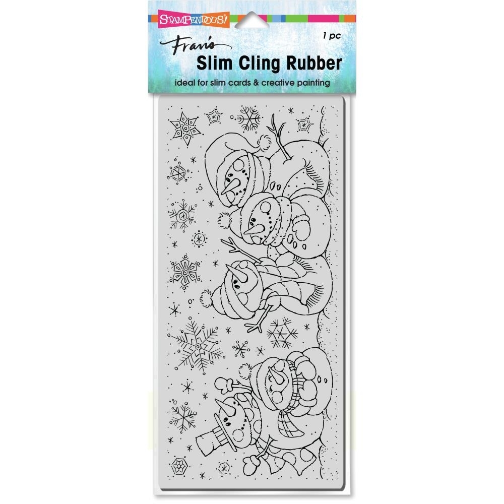 Σφραγίδα slimline cling rubber από την Stampendous. Τι συμβαίνει όταν μαζεύονται χαριτωμένοι χιονάνθρωποι και βολτάρουν στο χιονισμένο τοπίο; Ότι πλησιάζουν Χριστούγεννα! Πασπαλίστε τα έργα σας με την αισιοδοξία που αποπνέουν και απολαύστε γλυκές χαρούμενες στιγμές δημιουργίας!