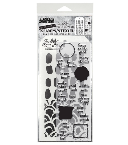Stampers Anonymous Tim Holtz Σετ με Σφραγίδες και Στένσιλ - Note Quotes, 20τεμ.