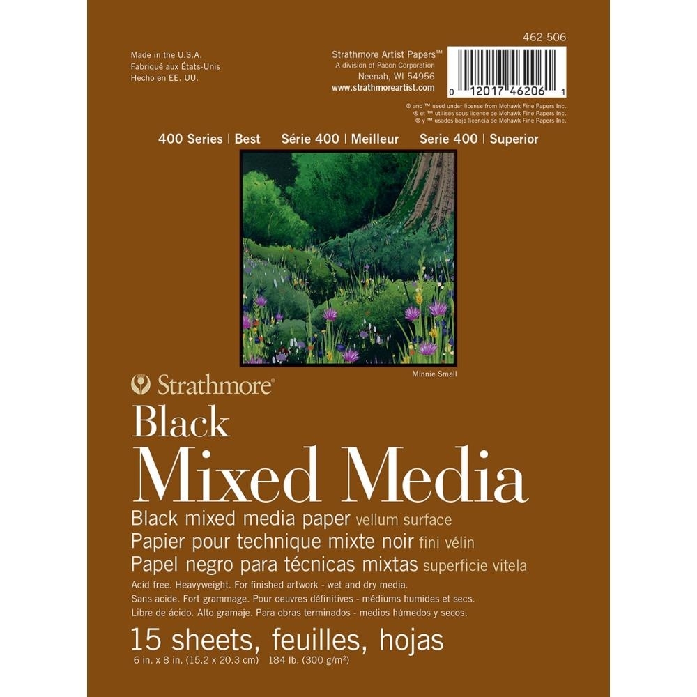 Το Strathmore Series 400 Mixed Media Black Pad είναι για δημιουργούς που θέλουν κάτι διαφορετικό από το κλασικό λευκό χαρτί — ένα χαρτί που δίνει ένταση, βάθος και θεατρικότητα στις τεχνικές τους. Με 15 φύλλα heavyweight 300gsm, σε βαθύ μαύρο χρώμα και vellum επιφάνεια, αυτό το μπλοκ απευθύνεται σε όσους αγαπούν να δουλεύουν με υγρά και ξηρά μέσα και να εξερευνούν τις αντιθέσεις και το φως.