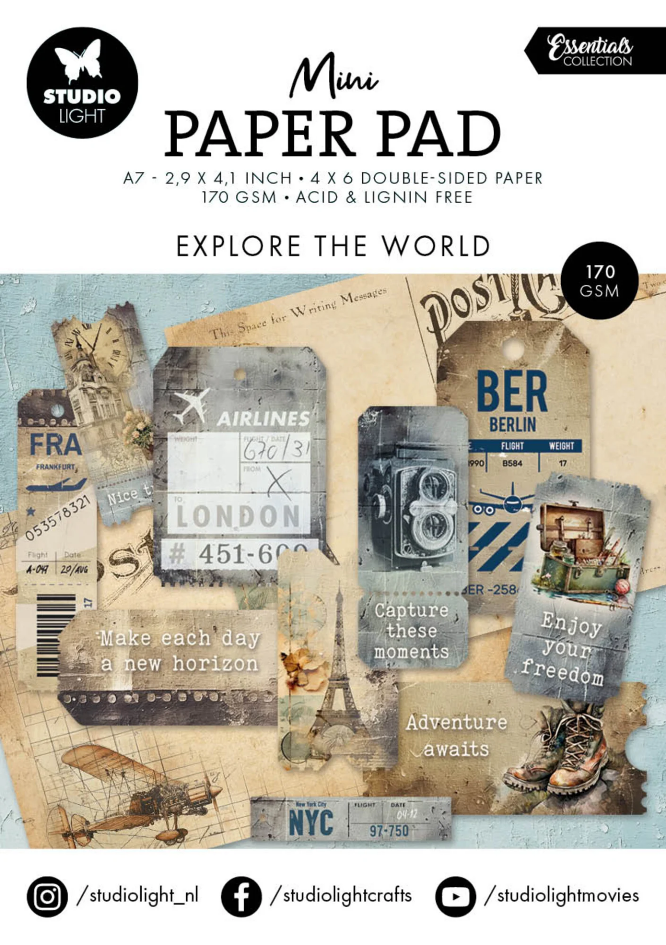 Studio Light essentials mini paper pad explore the world travel vacations airplanes αροπλάνο αεροπλάνα ταξιδια διακοπές a7 fuzzycutting journaling cards vintage ephemera junk journaling διακοσμητικά εφήμερα diy block