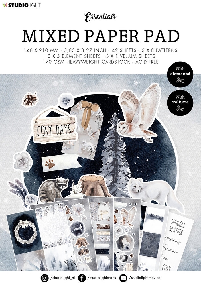 Η συλλογή Cosy Days Essentials της Studio Light είναι βγαλμένη σαν από παραμύθι! Σε αποχρώσεις του γκρι και του μπλε σκούρου, ονειρικά πλάσματα περιδιαβαίνουν σε σκοτεινά, μυστηριώδη τοπία και σας προσκαλούν σε ιδιαίτερες χειμωνιάτικες δημιουργίες!