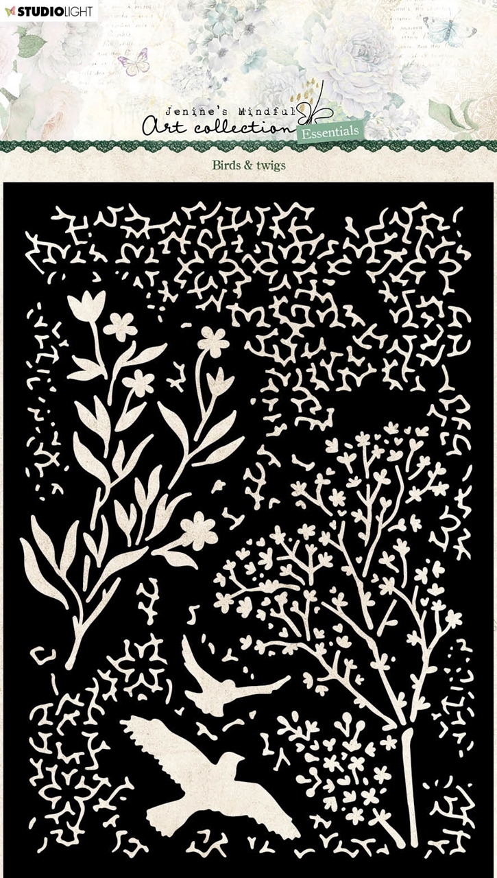 👉 Η συσκευασία περιέχει ένα στένσιλ με κλαδιά, λουλούδια, πουλιά και άλλα αφηρημένα σχέδια.