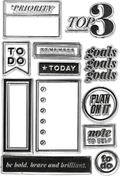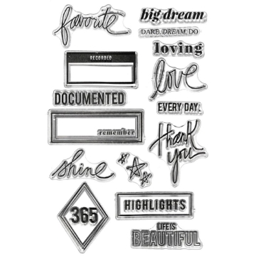 Σετ 12 σφραγίδων clear, έτοιμων για χρήση με ακρυλικό μπλοκ. Διάσταση καρτέλας 10 Χ 15 εκ.
