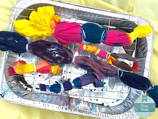 Επιλέξαμε τα κιτ της American Crafts, αλλά η τεχνική είναι η ίδια ακόμα και εαν διαλέξετε κιτ η χρώματα άλλης εταιρίας, όπως της Tulip , της Jacquard η της Rit! Μία διαφορά ανάμεσα στα κιτ της AmericanCrafts και αυτά της Tulip είναι οτι τα μπουκαλάκια χρώματος της AC είναι έτοιμα προς χρήση ενώ στης Tulip πρέπει να προσθέσετε νερό. Και στις δύο περιπτώσεις ανακατεύουμε καλά πριν την χρήση!