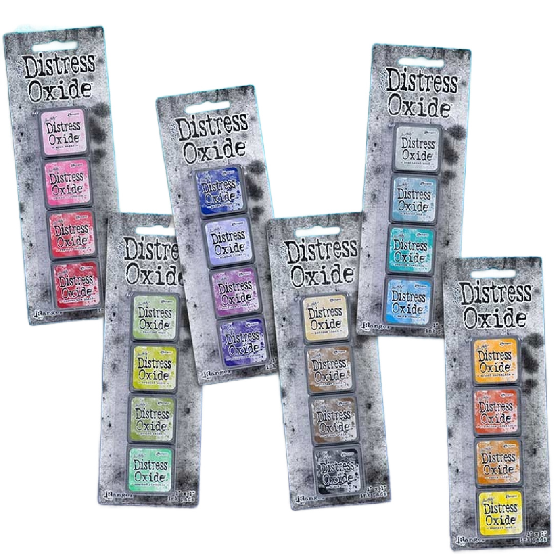 Mini pads με διάσταση 2.5 x 2.5 cm με τα γνωστά μελάνια Oxides του Tim Holtz. Τα Oxide είναι υδατο-δυαλυτά μελάνια που περιλαμβάνουν τόσο χρωστική (dye) όσο και pigments και δίνουν ένα μοναδικό εφέ οξείδωσης όταν βραχούν.