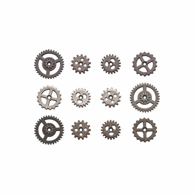 12 μικρά γραναζάκια με αντικέ φινίρισμα. Η συσκευασία περιέχει 4 από το κάθε είδος νικελ, μπρούτζο, χαλκό.