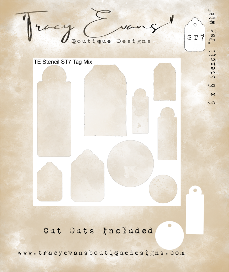 Το Tracy Evans Tag Mix Stencil είναι ένα ιδιαίτερα πρακτικό και δημιουργικό στένσιλ σχεδιασμένο για καλλιτέχνες mixed media και crafters που αγαπούν τα tags.