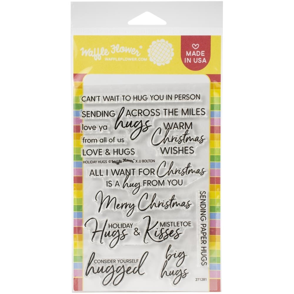 12 σφραγίδες clear της Waffle Flower Crafts με φράσεις όπως "All I want from Christmas is a hug from you”, "Can’t wait to hug you in person" και άλλες πολλές.