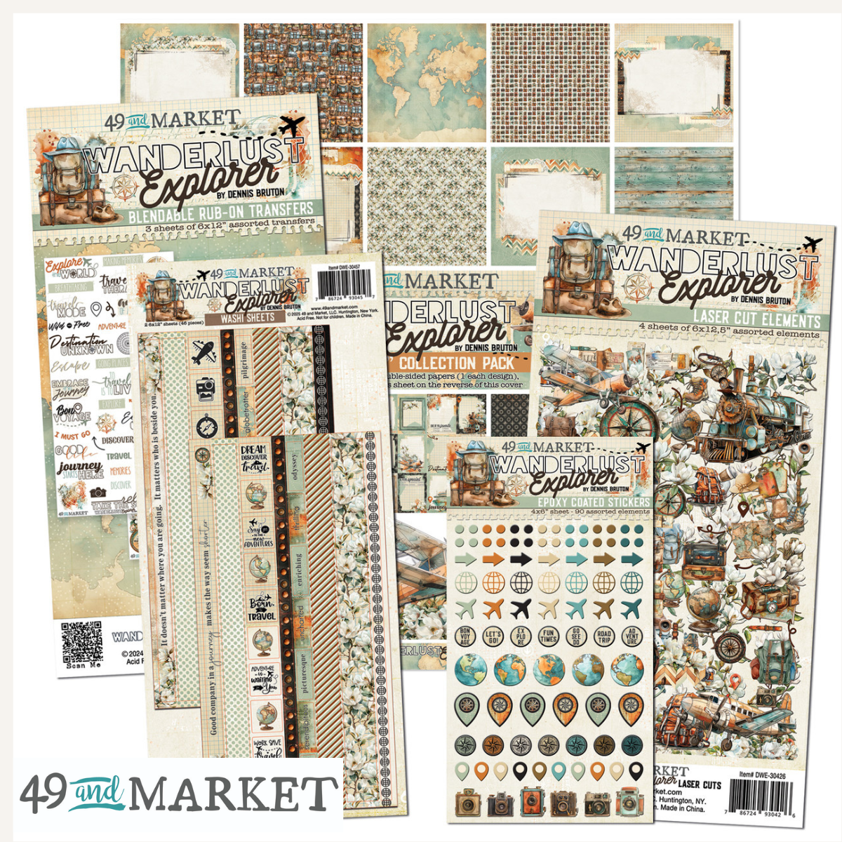 Απελευθερώστε την.. ταξιδιάρα ψυχή σας με τη συλλογή Wanderlust Explorer που έχει σχεδιάσει ο Dennis Burton για την 49 & Market! Η συλλογή μπλέκει αρμονικά κλασικά ταξιδιωτικά μοτίβα με απαλά λευκά elements εμπνευσμένα από τη φύση χαρίζοντας μια vintage αλλά και ταυτόχρονα μοντέρνα αισθητική που θα αναδείξει τις υπέροχες αναμνήσεις των ταξιδιών σας Η χρωματική παλέτα κινείται σε αποχρώσεις του πορτοκαλί, του απαλού μπλε και σε ουδέτερους τόνους, και είναι ιδανική για να καταγράψετε όλες τις περιπέτειές σας, μεγάλες ή μικρές. Σχεδιάστε την επόμενη απόδρασή σας και διατηρήστε το ταξίδι σας ζωντανό με αυτή τη μοναδική συλλογή!