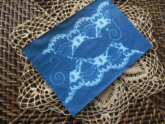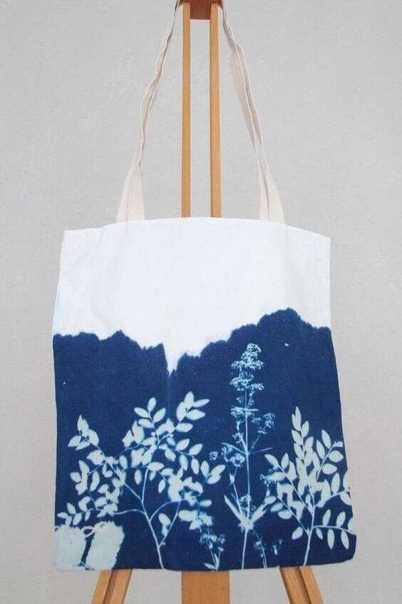 Μεταμόρφωσε υφασμάτινες τσάντες ή μπλουζάκια - Χρησιμοποίησε βαμβακερά ή λινά υφάσματα και δημιούργησε την 'εκτύπωση' σου με σχέδια της επιλογής σου – φύλλα, λουλούδια, κλειδιά, ακόμα και παλιές φωτογραφίες εκτυπωμένες σε transparency. Μετά την έκθεση και το ξέπλυμα, θα έχεις ένα 'wearable' έργο τέχνης με βαθύ μπλε αποτύπωμα. Μπορείς να προσθέσεις και κεντήματα για να εμπλουτίσεις το αποτέλεσμα.