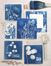 Δημιούργησε χειροποίητες κάρτες με 'κυανοτυπικά' prints - Ετοίμασε μικρά κομμάτια watercolor χαρτιού, κάνε prints με φύλλα ή λουλούδια, και αφού στεγνώσουν, κόλλησέ τα επάνω σε λευκή ή kraft κάρτα. Το αποτέλεσμα είναι κομψό και εντελώς μοναδικό – ιδανικό για δώρα ή ευχαριστήριες κάρτες με vintage αισθητική.