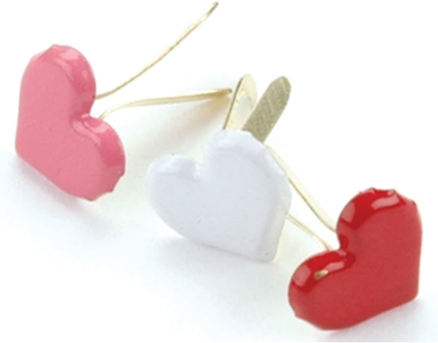 Η συσκευασία περιλαμβάνει 50 μεταλλικά διπλόκαρφα σε σχήμα καρδίας, σε τρία διαφορετικά χρώματα: κόκκινο, άσπρο και ροζ.
