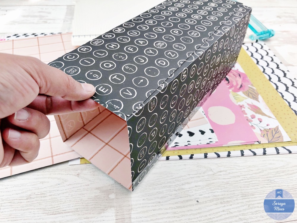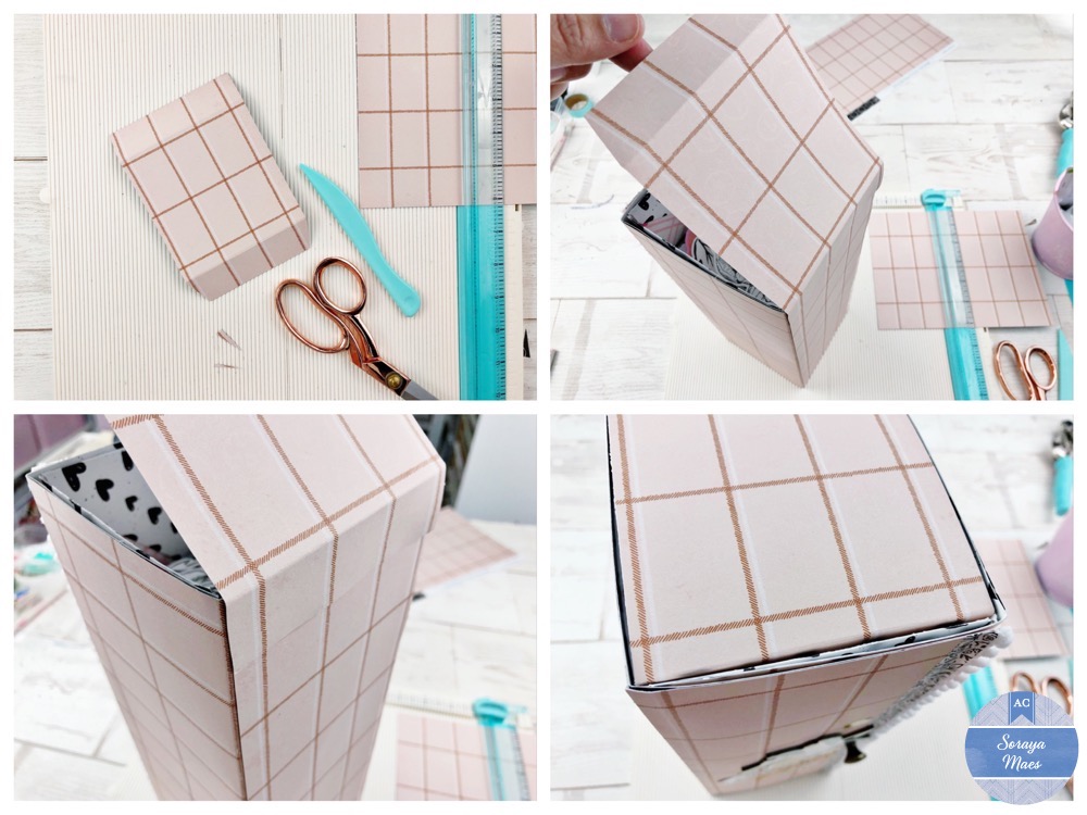 Καλό θα ήταν να ενισχύσουμε το εσωτερικό της κατασκευής μας, προσθέτοντας αλλη μία στρώση scrapbooking χαρτί.