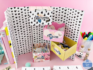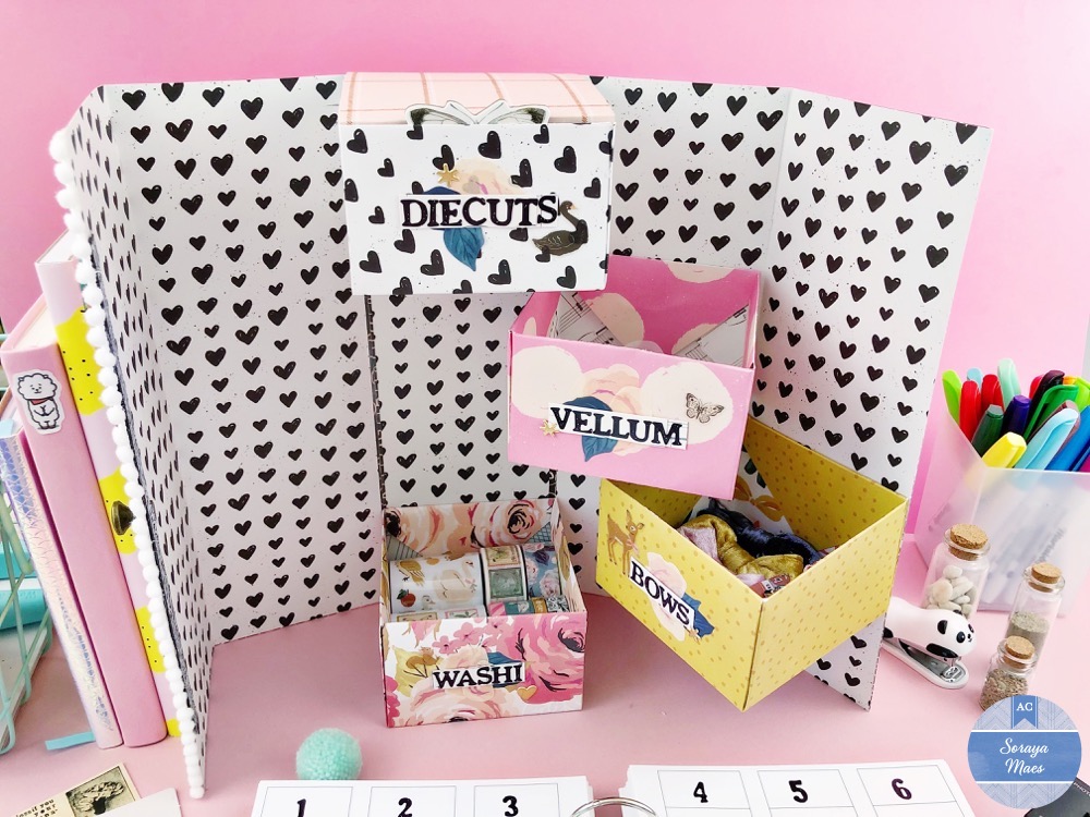 Καλημέρα! Σήμερα θα σας δείξουμε πως να φτιάξετε ενα ντουλαπάκι με τέσσερα ράφια/κουτιά για τα scrapbooking διακοσμητικά σας, die-cuts, washi tape, και άλλα.
