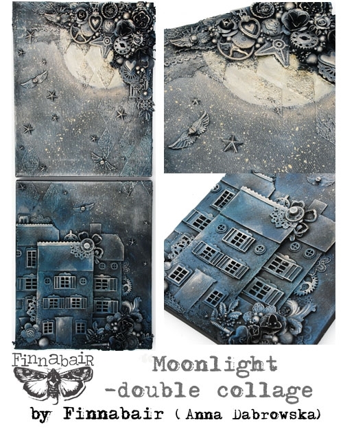 Αlmost unreal, beautiful double canvas collage based on textures, clusters of elements, dark background and non-conventional painting!