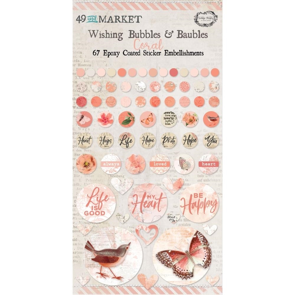 Τα Epoxy Coated Wishing Bubbles & Baubles – Coral της 49 and Market είναι διακοσμητικά στοιχεία με λεία, γυαλιστερή εποξική επίστρωση, σχεδιασμένα για να προσθέτουν φωτεινότητα, βάθος και καθαρό οπτικό αποτέλεσμα χωρίς να υπερκαλύπτουν τα υπόλοιπα στοιχεία της σύνθεσης.