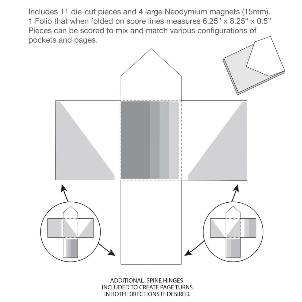 1 μαύρo pocket folio σε σχήμα φακέλου από τη συλλογή Foundations της 49 And Market. Περιέχει 11 die-cut κομμάτια που όταν συνδυαστούν φτιάχνουν μοναδικές θήκες ή σελίδες. Στη συσκευασία περιλαμβάνονται 4 μεγάλα μαγνητάκια (15 mm) για εύκολο κλείσιμο.