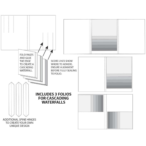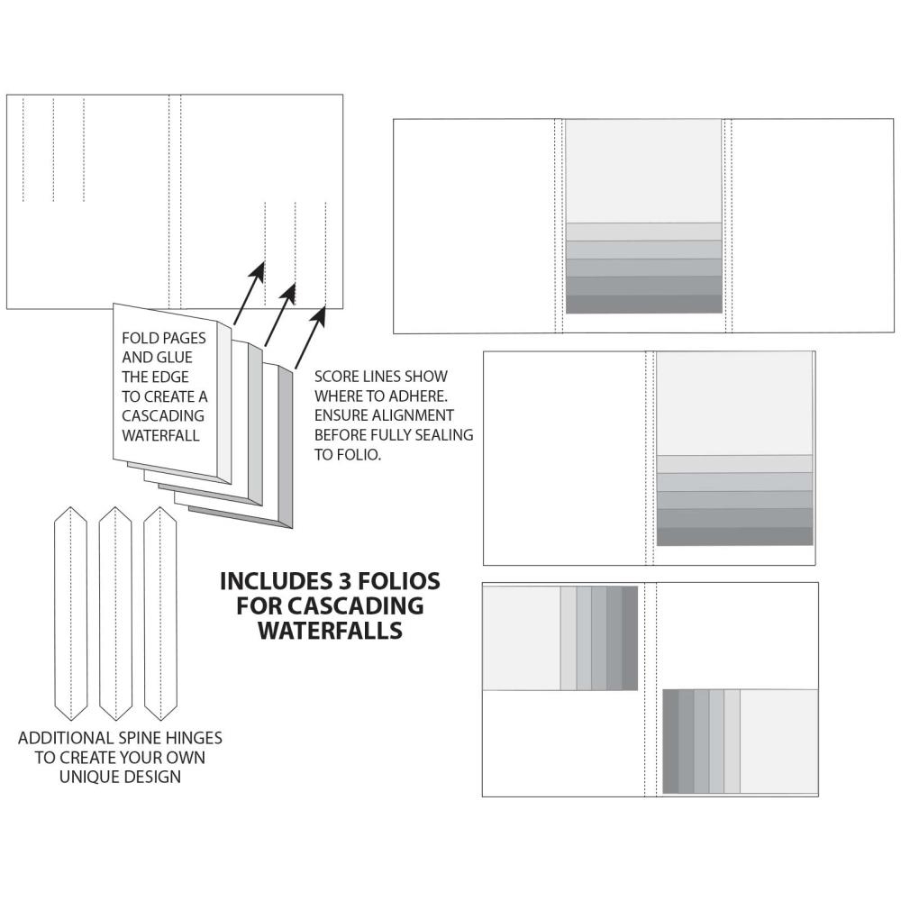 Η συσκευασία περιέχει ένα τρίπτυχο folio, έξι κομμάτια για waterfall 6"×4″, έξι κομμάτια για waterfall 3"×4″, ένα βιβλιαράκι 6"×4″, ένα βιβλιαράκι 3"×4″ και 3 επιπλέον ενώσεις ράχης (spine hinges) για να τα δέσετε με τον τρόπο που θα γυρνάνε οι σελίδες.