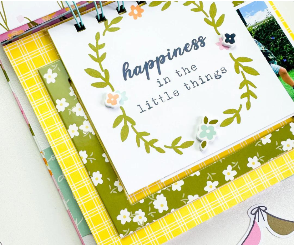 Before I started creating this mini album, I thought that I wanted it to be both cheerful and interactive, so that my nieces and nephews would enjoy flipping through it. I decided to make an album with spiral binding, which makes it easy for the pages to move and is also convenient for those cute little hands!