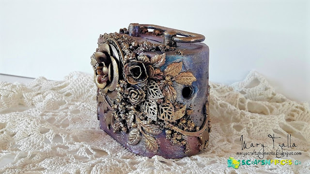 Είχα κάπου ξεχασμένο έναν παλιό κουμπαρά... ξέρετε αυτούς που μας έδιναν κάποτε από το ταχυδρομείο. Αυτόν λοιπόν αποφάσισα να μεταμορφώσω και σας ομολογώ ότι ευχαριστήθηκα πολύ με το αποτέλεσμα.