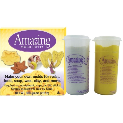 Φτιάξτε τα δικά σας καλούπια με το Amazing Mold Putty Kit της Alumilite. Είναι κατάλληλο για ρητίνη, κερί, σαπούνι, πηλό, ακόμα και για τρόφιμα (!). Η διαδικασία είναι εύκολη, γρήγορη, ασφαλής και διαρκεί λιγότερο από είκοσι λεπτά. Δεν χρειάζεται καθόλου εξοπλισμός, ποτηράκια ανάμειξης ή αναδευτήρες. Απλά μετρήστε και ανακατέψτε με το χέρι. Είναι συμβατό με FDA, Food Safe/ασφαλές για τρόφιμα.