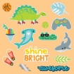 Εικόνες με καρχαρίες, δεινόσαυρους, αυτοκίνητα, ποδήλατα, φοίνικες, sentiments όπως Super boy power, Gamer incredible και άλλα.