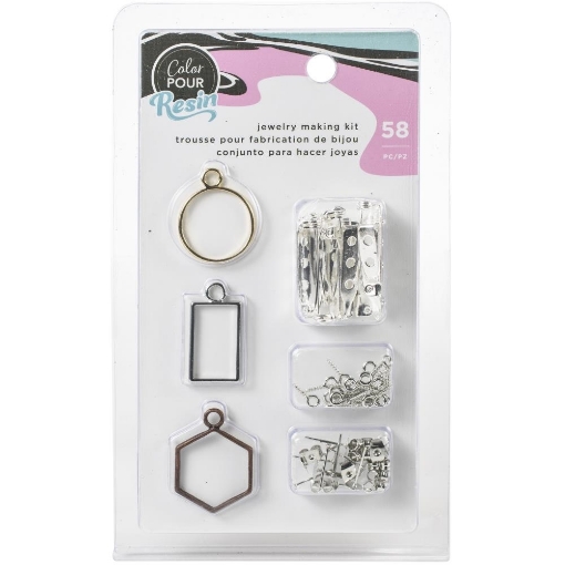 Ένα κιτ με ότι χρειάζεστε για να ξεκινήσετε να φτιάχεντε τα δικά σας κοσμήματα με ρητίνη: 3 bezels, συνδέσμους και pins, και εργαλείο με 4 διαφορετικά τρυπανάκια (58 τεμάχια σύνολικά).