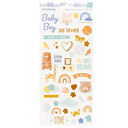 91 αυτοκόλλητα με χρυσές foil λεπτομέρειες από τη συλλογή Hello Little Boy της American Crafts.