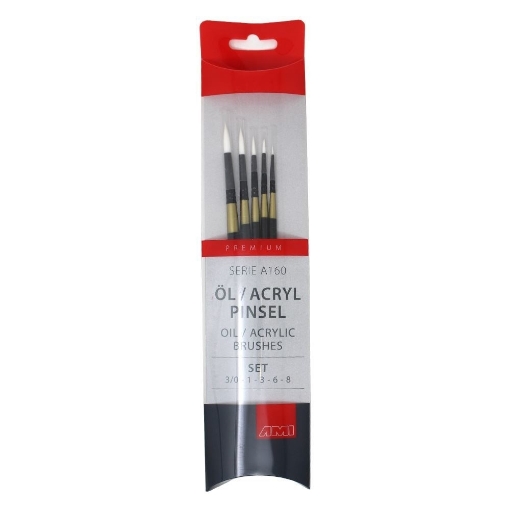 Set με 5 στρογγυλά πινέλα λεπτομέρειας κατάλληλα για ακρυλικά, λάδια και ακουαρέλα.