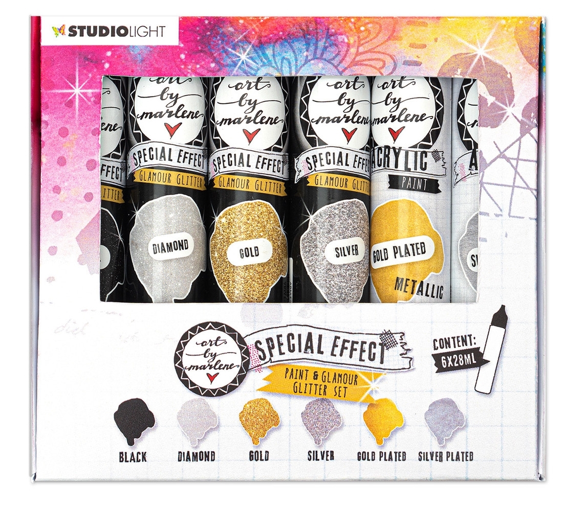 👉 Περιέχει τα χρώματα: Glamour Glitter: Black, Diamond, Gold και Silver. Metallics: Gold Plated και Silver Plated