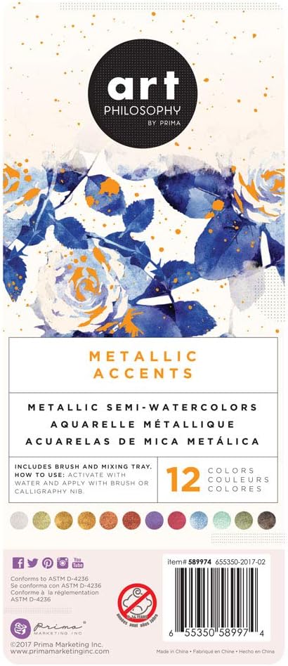 Ανακάλυψε τη μαγεία της μεταλλικής ακουαρέλας με το Metallic Accents Semi-Watercolor Paint Set. Η Art Philosophy συνδυάζει την υψηλή ποιότητα των ακουαρέλων της με εντυπωσιακά ιριδίζοντα pigments, δημιουργώντας 12 πλούσιες, λαμπερές αποχρώσεις που αντανακλούν το φως με εκλεπτυσμένο τρόπο.