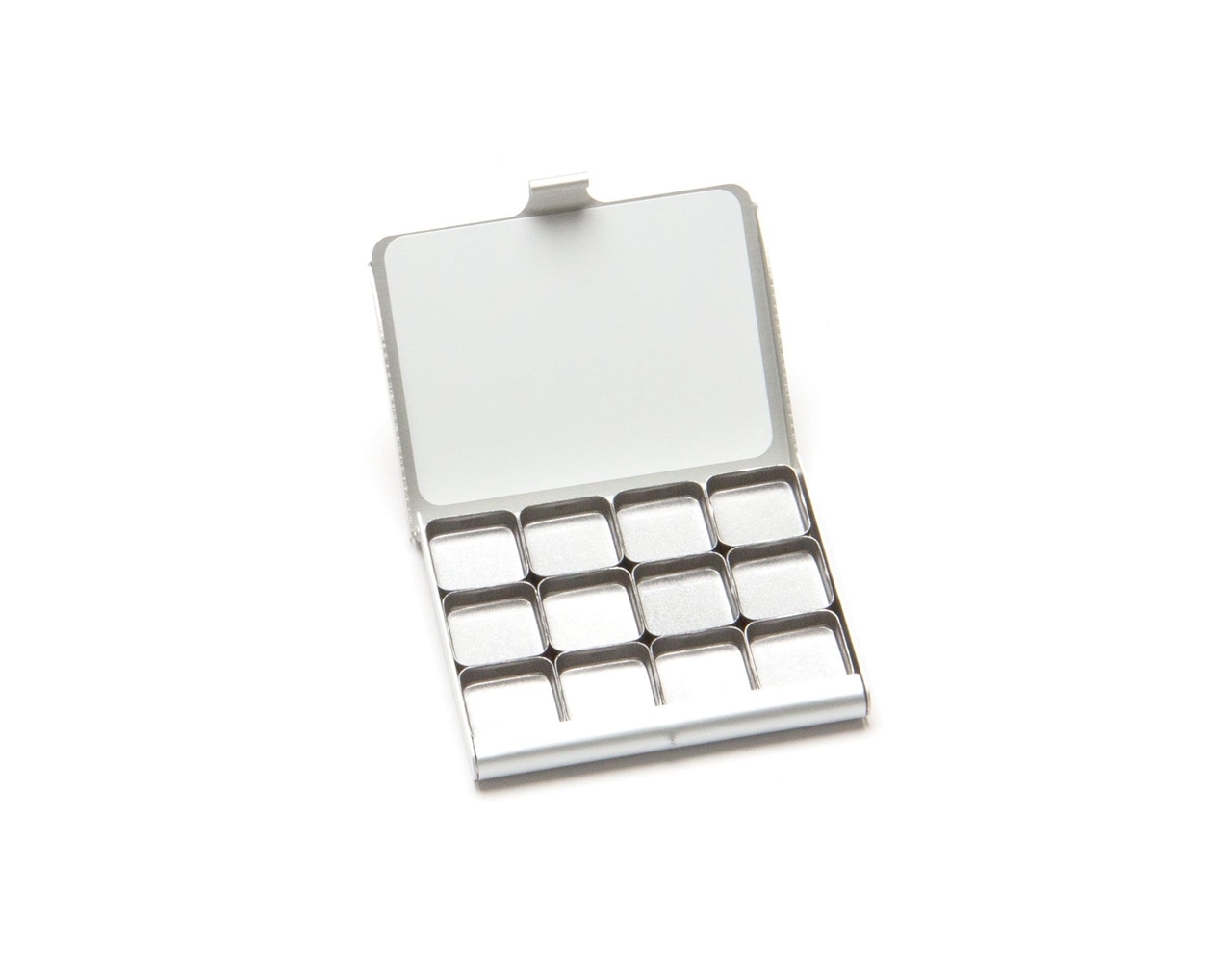 art toolkit set with mini pans magnetic demi pocket watercolor palettes for urban sketchers metallic aluminum μαγνητική μεταλλική παλέτα τσέπης αλουμινιου για καλλιτέχνες ακουαρέλα νερομπογιές ασημι silver με θηκες θεσεις