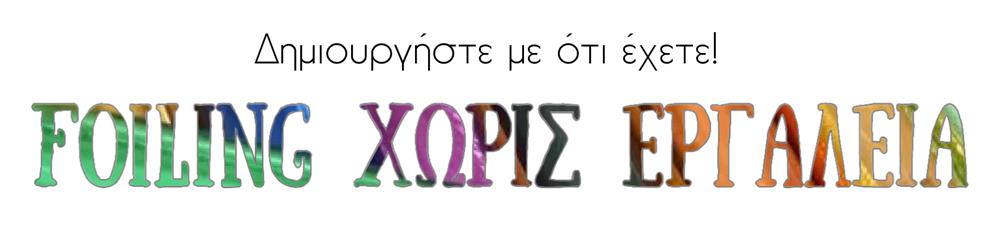 Και αν αναρωτιέστε τι άλλο μπορείτε να κάνετε με τα hot foil stamps, ένα θα σας πω. Είναι τα πιο απίθανα embossing folders ever! Χρησιμοποιήστε τα ως έχουν για embossing & debossing, και θα εντυπωσιαστείτε με την βαθιά αποτύπωσή που κάνουν. Μελανώστε τα για να κάνετε ταυτόχρονα σφράγιση και embossing ή πατήστε τα σαν σφραγίδες στο ήδη μελανωμένο σας background! Εγώ δεν το έχω δοκιμάσει, αλλά ξέρω άλλους που τα χρησιμοποιούν σαν printing plates με μελάνια λινοτυπίας για εκτυπώσεις πάνω σε μπλουζάκια, τσάντες κλπ. Από ότι καταλάβατε ... φαντασία να υπάρχει και οι πιθανότητες είναι απλά ατελείωτες!