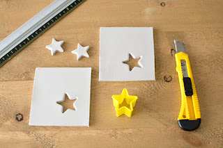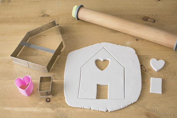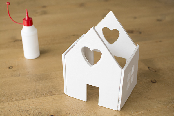 Εαν δεν έχετε κουπ-πατ σε σχήμα σπιτιού, δεν πειράζει. Με ένα μολύβι και χάρακα σχεδιάστε το σχήμα και κόψτε το με ένα κοπίδι! Κόψτε την πόρτα και ίσως παράθυρο, χρειαζόμαστε 'κενά' για να βγαίνει το φως του κεριού!