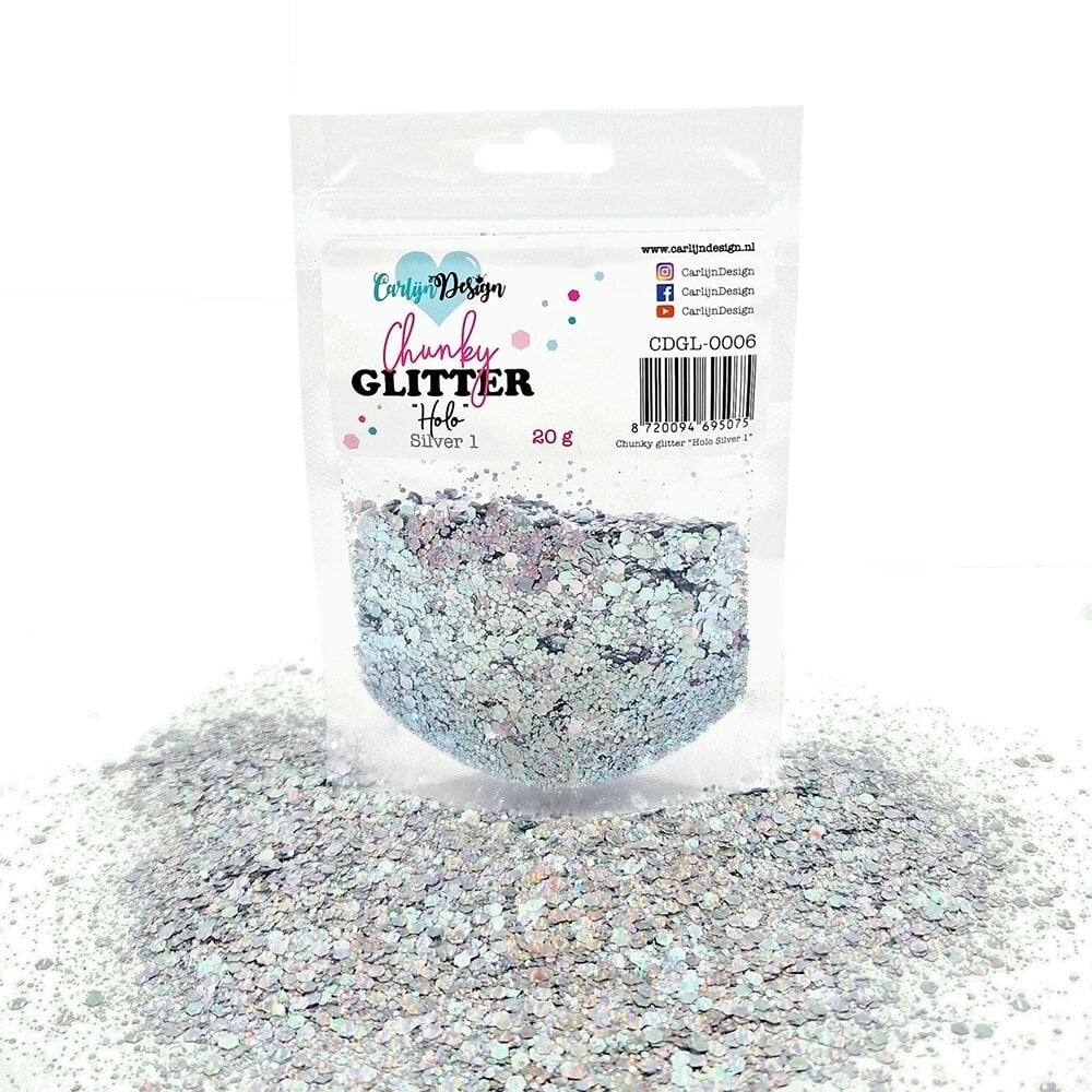 👉 Η συσκευασία περιέχει ένα φακελάκι με χοντρό glitter περιεκτικότητας 20 gr (0,7 oz), χρώματος ασημί.