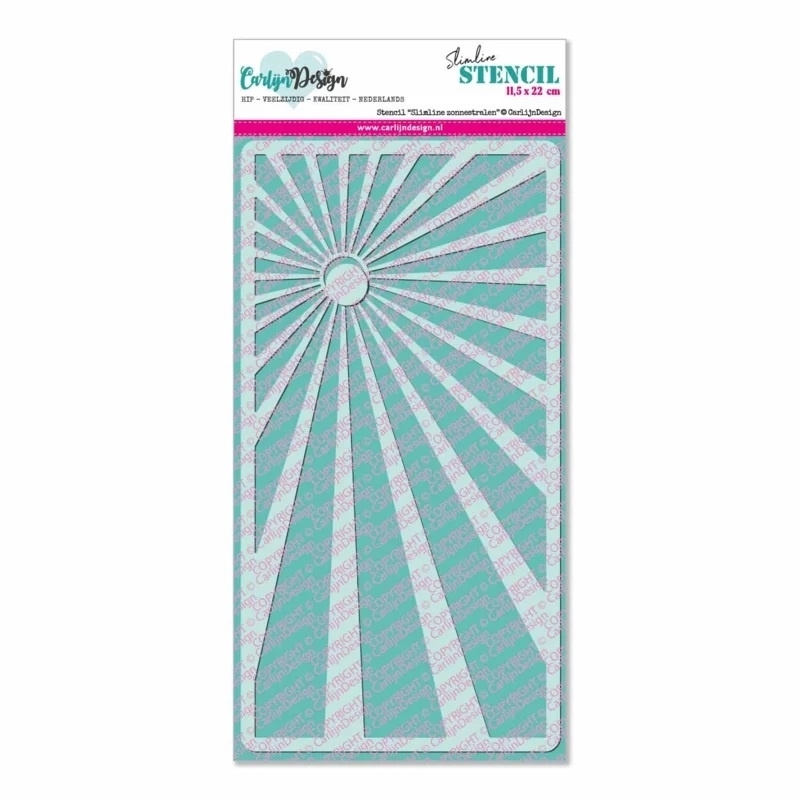 1 slimline στένσιλ από την Carlijn Design. Εικόνες με ακτίνες ηλίου. Δημιουργείστε όμορφα backgrounds για τις κάρτες, τα scrapbooking και mixed-media έργα σας.