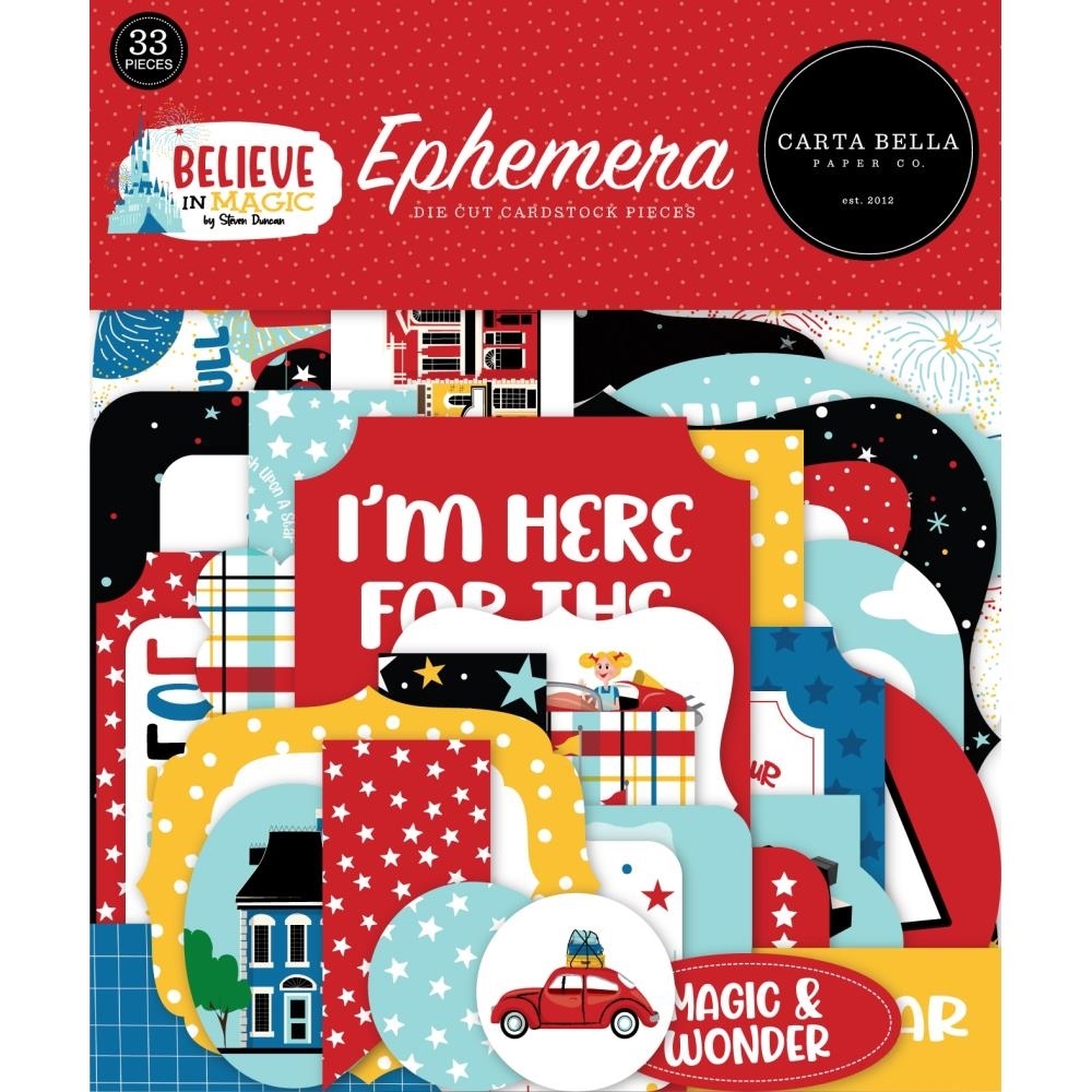 33 διακοσμητικά εφέμερα από τη συλλογή Believe In Magic της Carta Bella. Παιχνιδιάρικα quotes, αερόστατα, μπαλόνια, κάστρα, πυροτεχνήματα και φωτογραφικές μηχανές βρίσκονται στις υπηρεσίες σας! Πασπαλισμένα με μπόλικη μαγεία, σας προσκαλούν σε ένα κόσμο όπου η φαντασία δεν έχει ηλικία και τα όνειρα είναι παντοτινά!