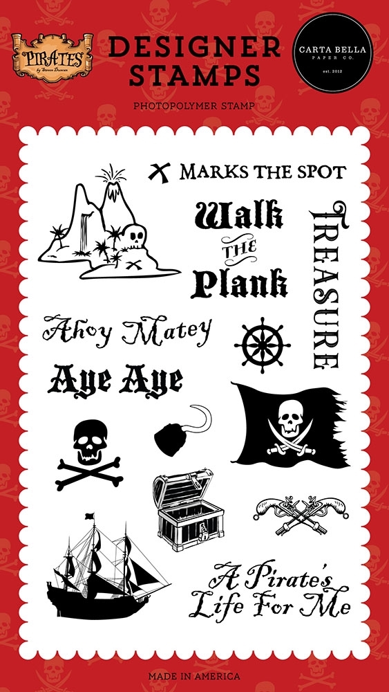 👉 Η συσκευασία περιλαμβάνει 14 διάφανες σφραγίδες με εικόνες με νεκροκεφαλές, πειρατικές σημαίες, σεντούκια, ναυτικά τιμόνια και sentiments όπως Walk the Plank, Treasure, Ahoy Matey και άλλα.