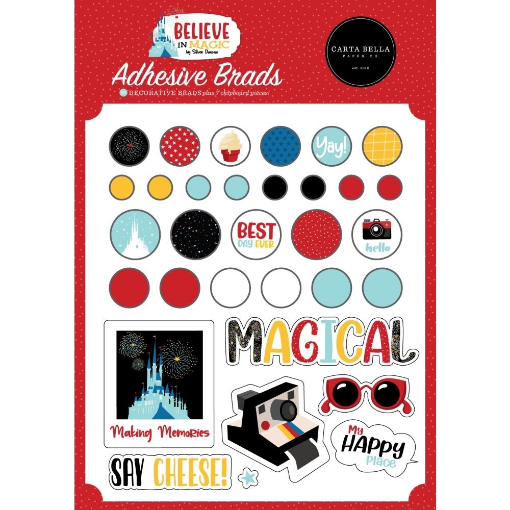26 διακοσμητικά αυτοκόλλητα brads και 7 chipboard κομμάτια από τη συλλογή Believe In Magic της Carta Bella. Παιχνιδιάρικα quotes, αερόστατα, μπαλόνια, κάστρα, πυροτεχνήματα και φωτογραφικές μηχανές βρίσκονται στις υπηρεσίες σας! Πασπαλισμένα με μπόλικη μαγεία, σας προσκαλούν σε ένα κόσμο όπου η φαντασία δεν έχει ηλικία και τα όνειρα είναι παντοτινά!